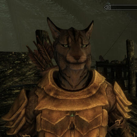 Gender: MaleFylix is a Dragonborn-Kahjiit living in Whiterun. He was brought to Helgen after being caught stealing (similar to Lokir). He, Mukava and Mogak all witnessed the Helgen-disaster unfold and managed to escape successfully.Fylix spends his time travelling Skyrim in hopes of stopping Alduin once and for all. He travels with his friend and bodyguard Teldryn Sero.He, like Teldryn, wears his armour's helmet constantly. This is due to the constant assumptions made about his race - and that they assume his intentions are to steal from them. He is, but the point still stands. In addition, he wears it to hide his race whilst in Skyrim's many cities (canonically kahjiit are banned from entering cities)Sometimes Fylix will find children's items in others homes, which he will then steal and bring home for his adopted daughter (Lucia).Fylix is selectively mute. He uses sign language.
