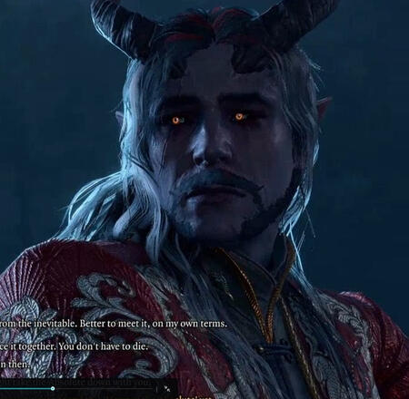 Mantra is my semi-evil-turned redemption Dark Urge in Baldur's Gate 3.He is a paladin of devotion, and despite generally sticking to the oath in Act 1, he did not care about others and their issues. He is impulsive (thanks -1 intelligence!), and the only person he cares for truly is himself. For example, he rescued the man trapped in the blaze, but took the ring as payment.He elected to ignore the grove/goblin dispute entirely, meaning the refugees all died in his save.His turning point was in Act 2, after realising his urges would turn on his friends. In addition, he lost his oath in this act to rescuing Wulbren Bongle.In Act 3, he rejected his Father, electing for death as a safer measure than his life. After being resurrected without the dark urges, he developed somewhat of a saviour complex - not truly believing he can be redeemed, but not wanting others to suffer similar fates he once caused. However, empathy is still something he struggles with, though with the urges gone it is easier to understand.Mantra is an Astarion romance save. Whilst the fourth slot switches out, him and Gale are mainstays. The wizard is pretty much his best friend (although Tara did in fact try to kill him upon meeting her for the first time).A minor detail, Mantra is transmasc. It doesn't impact his story much, if at all.