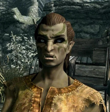 Gender: FemaleMogak is an orc who was arrested and brought to Helgen due to her accidentally buying and selling an expensive stolen good. Her, Fylix and Mukava all witnessed the Helgen-disaster unfold and managed to escape successfully.Originally from a stronghold, she left to pursue a life of travel and trading. Terrible at combat, she tries to make up for it with an extensive knowledge of culinary skills and forging.She travels with her pet Goat, Hilda; travelling the roads, searching for her next inn/town to stay at. She also has a farm, of which she uses to grow, sell, and cook vegetables. She can typically be found around Whiterun - if you ask why, she'll tell you it's where profits are to be made. In reality, she simply finds the area remarkably beautiful.